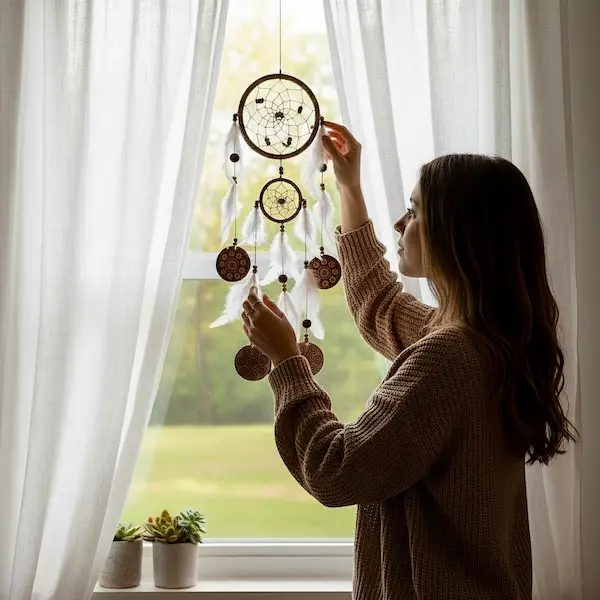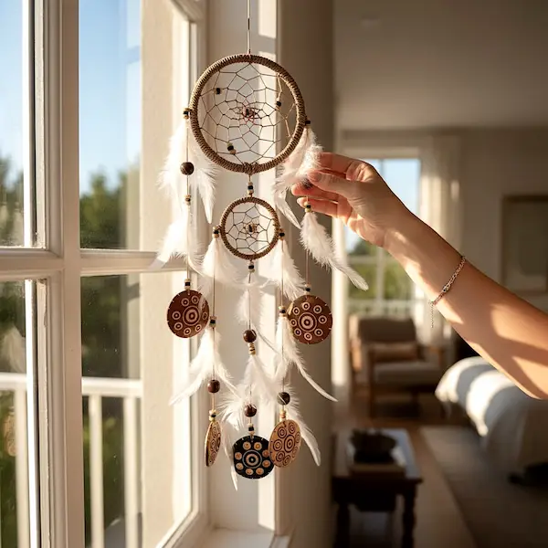 Denne drømmefanger egner sig særligt godt til ophæng i soveværelset, hvor den kan bidrage til en tryg og afslappende atmosfære. Den passer også smukt i stuen, entréen, et yogarum eller et meditationshjørne, hvor dens naturlige udtryk understøtter ro, nærvær og balance. Drømmefangeren er desuden oplagt som gave til en, der værdsætter håndlavede produkter, spiritualitet og naturlig boligindretning.