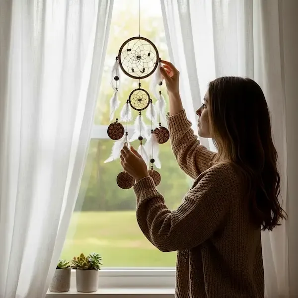 Hæng din drømmefanger over sengen, i et vindue eller i dit spirituelle hjørne, hvor den kan bevæge sig let i luften. Det hjælper med at aktivere dens energi og skabe et roligt, beskyttende felt omkring dig.