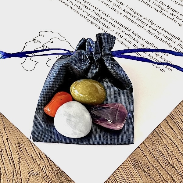 Dyk ned i den magiske verden af vores krystalsæt til Tvillingens tegn, særligt designet til at harmonisere med Tvillingens luftige, nysgerrige og alsidige natur. Dette stensæt understøtter mental klarhed, indre balance og personlig udvikling og hjælper dig med at forbinde dig med dine intellektuelle og kommunikative sider.