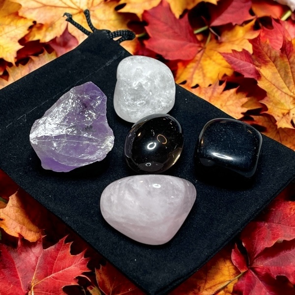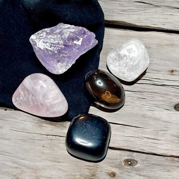 - Bjergkrystal: Denne klare sten harmoniserer energierne og forstærker effekten af de andre krystaller i sættet.