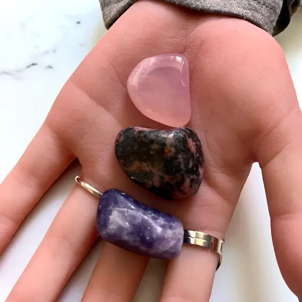 Rosenkvarts: Hjælper med at åbne hjertechakraet og fremme selvkærlighed, empati og medfølelse.