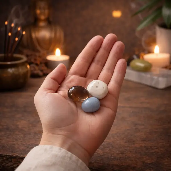 Brug krystallerne i stille stunder, ved meditation eller når du har brug for at samle tankerne og finde fodfæste. Du kan holde én sten ad gangen i hånden og sætte en intention om stabilitet, grounding og mental klarhed.
