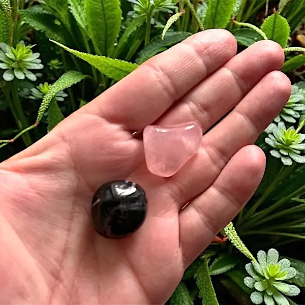 Sort Onyx og Rosenkvarts (2-3 cm) – Beskyttelse og Kærlighed