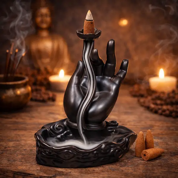 Stor og super smuk backflow røgelsesholder udformet så smukt som en hånd, der holder en lotusblomst 💙