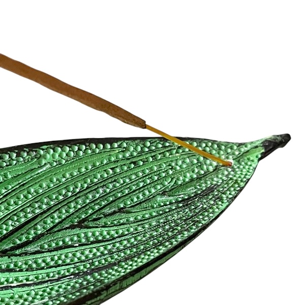 Bladets fine detaljer og organiske form gør denne røgelsesholder til mere end blot et praktisk redskab. Den fungerer også som en dekorativ genstand, der tilfører rummet en naturlig og afslappet stemning. Den passer perfekt ind i mange forskellige indretningsstile – lige fra boheme og nordisk minimalisme til mere klassiske eller spirituelle omgivelser.