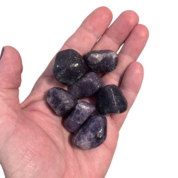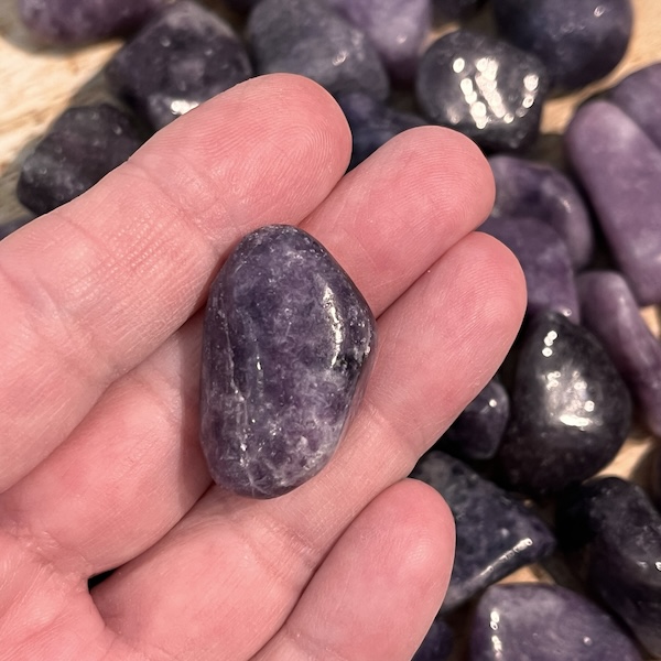 Smukke polerede lommesten i Lepidolit en skøn lilla sten med målene 2 - 3 cm en fin lommestørrelse 💜