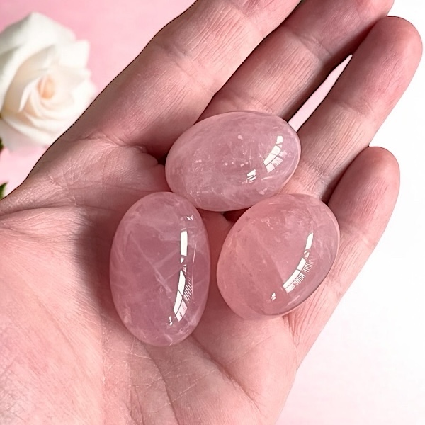 Deres størrelse og polerede form gør dem ideelle til dig, der ønsker en sten, som er både smuk og praktisk. Med deres blide, lyserøde nuancer er de en fryd for øjet og bringer samtidig naturens kærlige energi tættere på.