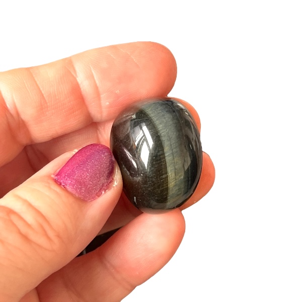 Blå Tigerøje, også kendt som Falkeøje, er en fantastisk sten med subtile blå nuancer og et strejf af gyldent flash. Disse lommesten er en perfekt tilføjelse til enhver stensamling og kan bruges til både dekorative og spirituelle formål.