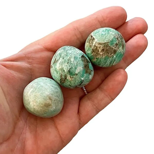 Hver Amazonit lommesten er unik i farvetone og mønster. Prisen er for 1 stk., så du kan vælge lige den mængde, der passer til dig. De er en skøn gaveidé til en, der har brug for mere ro og styrke i hverdagen eller som en personlig amulet til selvudvikling og spirituel praksis.