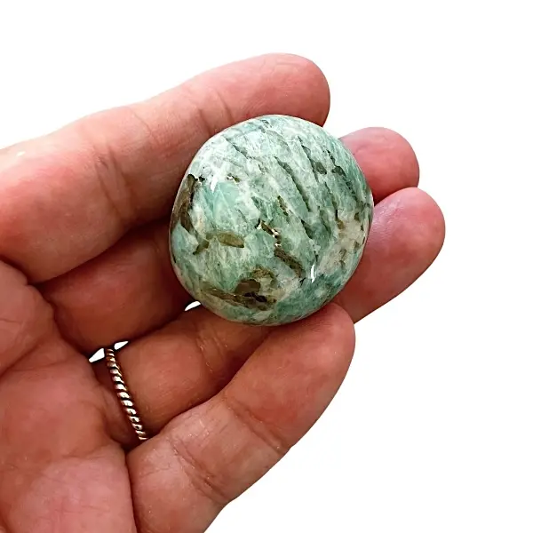 Disse runde, glatte sten ligger behageligt i hånden under meditation eller afslapning. Du kan også placere en Amazonit i dit hjem eller på arbejdspladsen for at skabe en fredelig atmosfære og et beskyttende felt mod stress og uønsket energi.