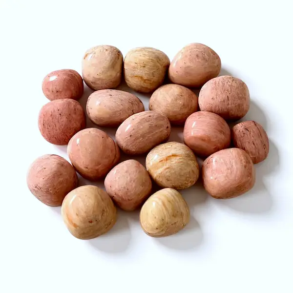 Rhodonit lommestenene er slebet i en rund og harmonisk form, som gør dem særligt velegnede som lommesten. Den afrundede form ligger godt i hånden og gør stenen rar at holde ved i rolige øjeblikke.