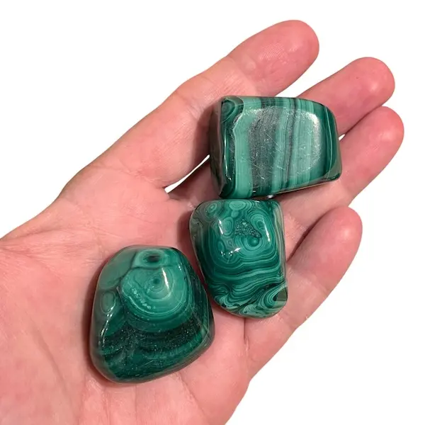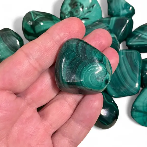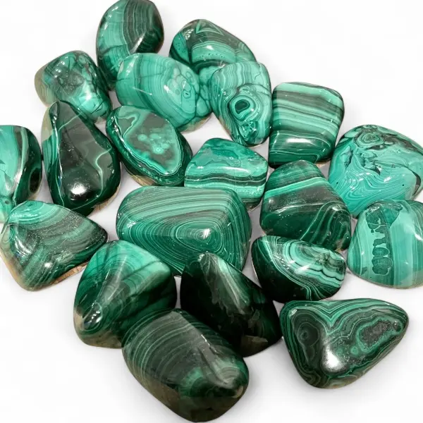 Oplev disse store malakit poleret lommesten – kraftfulde og visuelle smukke krystaller med mål imellem 3 - 4 cm. Hver sten er unik med sine naturlige mønstre og fordybninger, som vidner om dens jordiske oprindelse. Denne dybgrønne sten er kendt for sin evne til at fremkalde transformation og følelsesmæssig healing – en sand gave fra naturen.