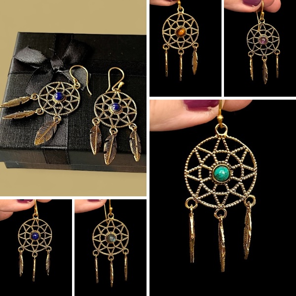 Lad disse smukke håndlavede drømmefanger øreringe bringe balance, beskyttelse og positiv energi ind i dit liv. Vælg din ønskede krystal og tilføj et unikt, åndeligt touch til din smykkesamling i dag.