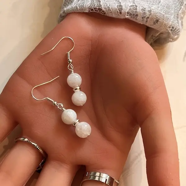 Regnbue månesten er kendt for sin fortryllende glans og sine spirituelle egenskaber. Denne sten forbindes med intuition, femininitet og følelsesmæssig balance. Når du bærer disse øreringe, kan regnbue månesten hjælpe dig med at styrke din indre ro og skabe forbindelse til din feminine kraft. Stenen siges også at understøtte nye begyndelser og fremme følelsen af harmoni. Det gør disse øreringe til et oplagt valg for dig, der ønsker mere end bare et smykke – du får et smykke med energi og betydning.