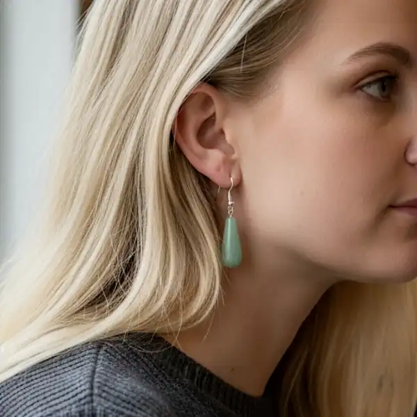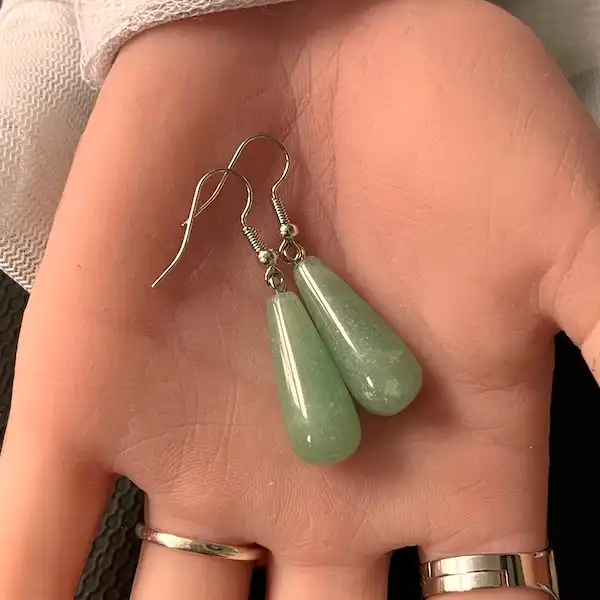 Dråbeformen giver et klassisk og feminint look, der gør dem alsidige til enhver lejlighed. Øreringene passer smukt til både lyse og mørke nuancer i tøjet og kan kombineres med andre grønne eller neutrale krystaller som bjergkrystal eller røgkvarts for at skabe en harmonisk energi.