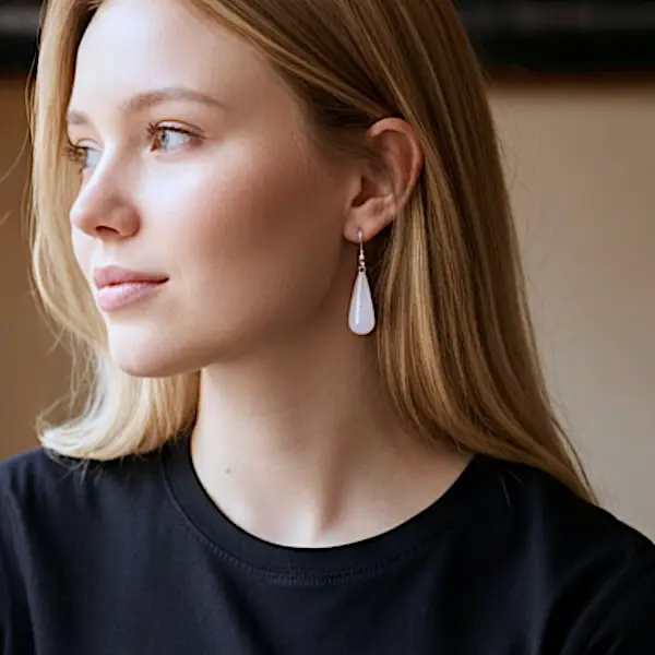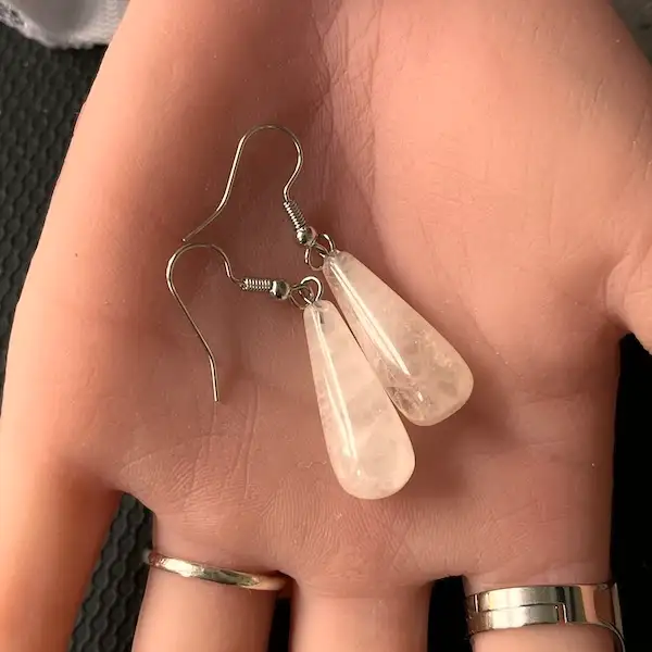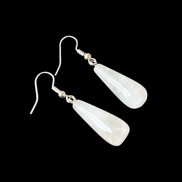 Dråbeformen giver et klassisk og feminint udtryk, mens den klare sten tilfører et strejf af renhed og lys. Disse håndlavede øreringe passer perfekt til enhver stil og lejlighed – fra det enkle og naturlige til det elegante og spirituelle.